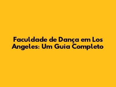 Faculdade De Dança Em Los Angeles: Um Guia Completo