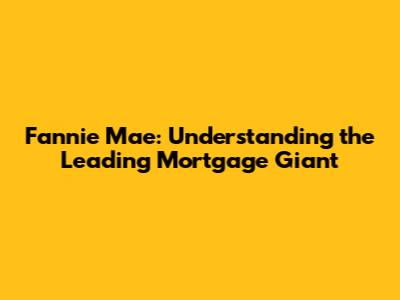 Fannie Mae: Understanding The Leading Mortgage Giant