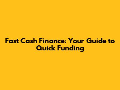 Fast Cash Finance: Your Guide To Quick Funding