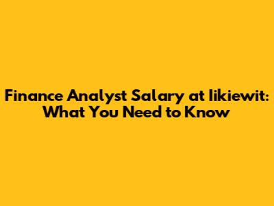 Finance Analyst Salary At Iikiewit: What You Need To Know