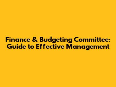 Finance & Budgeting Committee: Guide To Effective Management