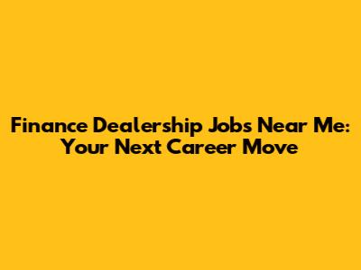 Finance Dealership Jobs: Find Opportunities Near You