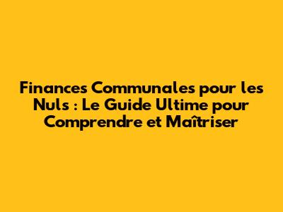 Comprendre les Bases des Finances Communales