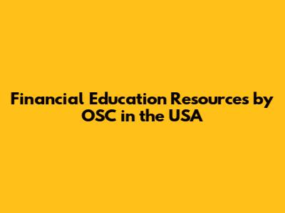 Financial Education Resources By OSC In The USA