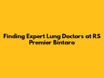 Finding Expert Lung Doctors At RS Premier Bintaro