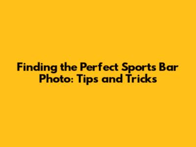 Finding The Perfect Sports Bar Photo: Tips And Tricks