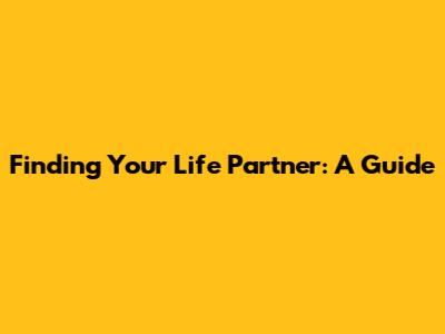 Finding Your Life Partner: A Guide