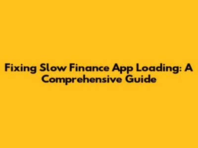 Fixing Slow Finance App Loading: A Comprehensive Guide