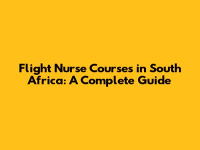 Flight Nurse Courses In South Africa: A Complete Guide