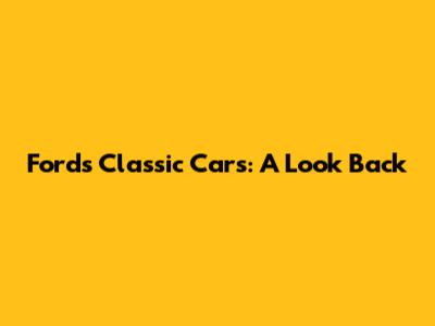 Ford's Classic Cars: A Look Back