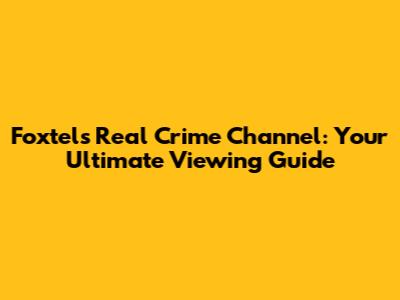 Foxtel's Real Crime Channel: Your Viewing Guide