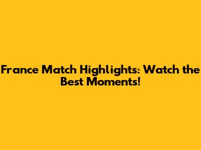 France Match Highlights: Watch The Best Moments!
