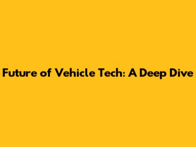 Future Of Vehicle Tech: A Deep Dive
