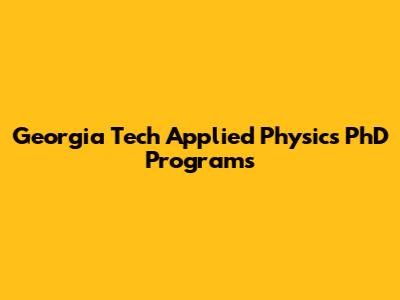 Georgia Tech Applied Physics PhD Programs