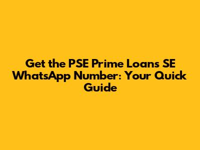 Get The PSE Prime Loans SE WhatsApp Number: Your Quick Guide