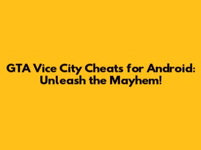 GTA Vice City Cheats For Android: Unleash The Mayhem!