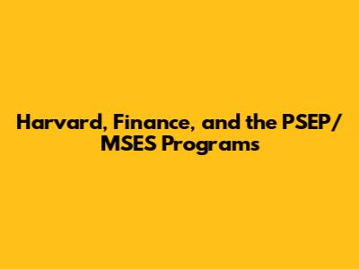 Harvard, Finance, And The PSEP/MSES Programs