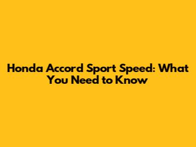 Honda Accord Sport Speed: What You Need To Know
