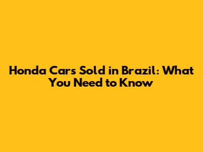 Honda Cars Sold In Brazil: What You Need To Know