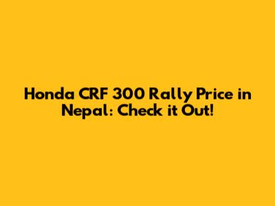 Hey guys! Are you ready to dive into the world of adventure biking? Today, we're checking out the Honda CRF 300 Rally and figuring out how much it'll set you back in Nepal. This bike is an absolute beast, blending off-road capability with on-road comfort, making it a super popular choice for riders who want to explore the diverse terrains of Nepal. Let's get into the details and see what makes this bike so special and, most importantly, how much it costs.