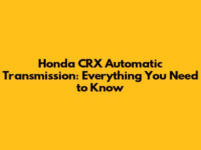 Honda CRX Automatic Transmission: Everything You Need To Know