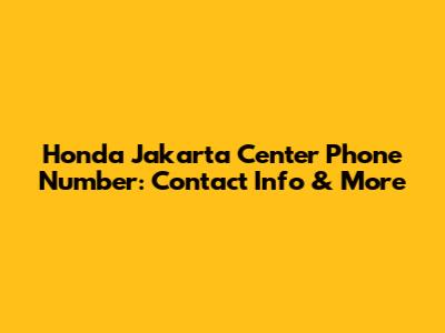 Honda Jakarta Center Phone Number: Contact Info & More