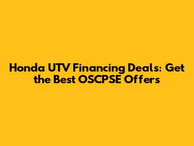 Honda UTV Financing Deals: Get The Best OSCPSE Offers