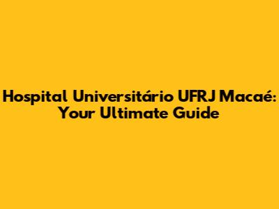 Hospital Universitário UFRJ Macaé: A Comprehensive Guide