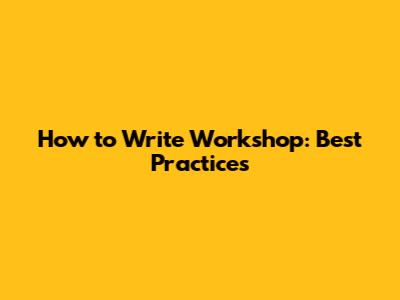 How To Write Workshop: Best Practices