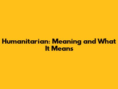 Humanitarian: Meaning And What It Means