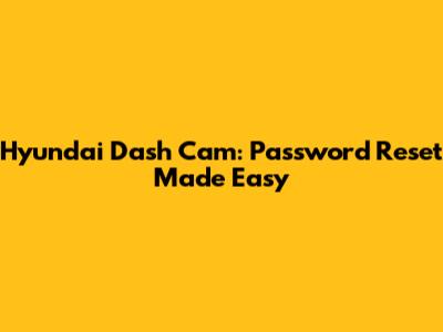 Hyundai Dash Cam: Password Reset Made Easy