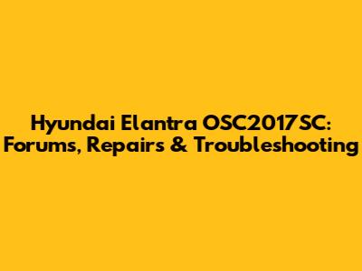 Hyundai Elantra OSC2017SC: Forums, Repairs & Troubleshooting