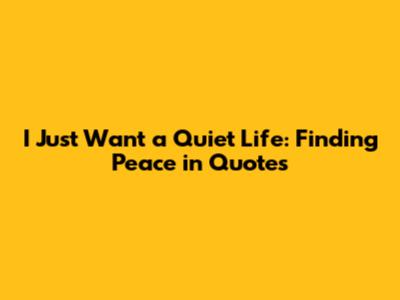 I Just Want A Quiet Life: Finding Peace In Quotes