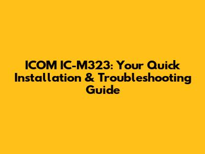 ICOM IC-M323: Your Quick Installation & Troubleshooting Guide