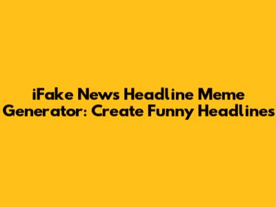 Are you looking to create a hilarious meme? Or maybe you want to prank your friends with a believable yet outrageous news headline? Well, look no further! With the iFake News Headline Meme Generator, you can easily craft your own sensational headlines and share them with the world. Let's dive into how this tool works and why it's perfect for some lighthearted fun.