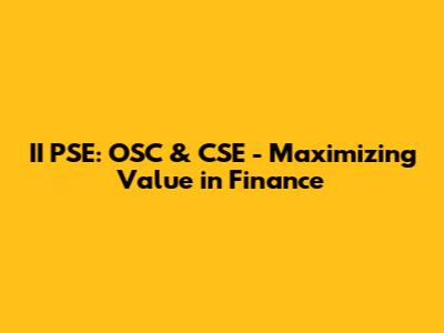 II PSE: OSC & CSE - Maximizing Value In Finance