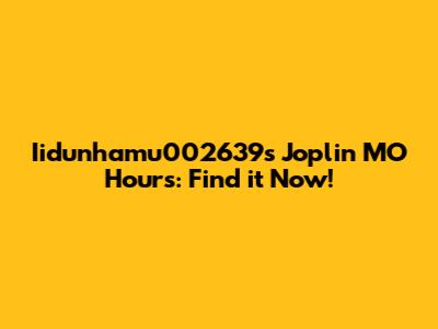 Iidunhamu002639s Joplin MO Hours: Find It Now!