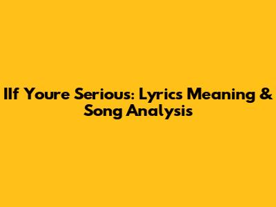 IIf You're Serious: Lyrics Meaning & Song Analysis