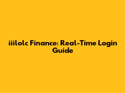 Iiilolc Finance: Real-Time Login Guide