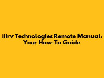Iiirv Technologies Remote Manual: Your How-To Guide