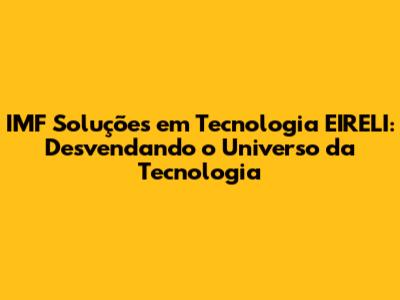 Olá, pessoal! Se você está procurando uma empresa de tecnologia que realmente entende do assunto e pode te ajudar a alavancar seus negócios, então você está no lugar certo. Hoje, vamos mergulhar no mundo da IMF Soluções em Tecnologia EIRELI, uma empresa que se destaca no mercado por sua expertise e compromisso em entregar soluções inovadoras e sob medida. Preparados para descobrir tudo sobre essa parceira estratégica?