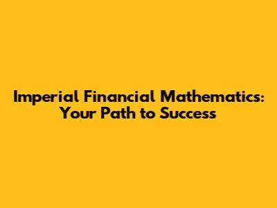 Imperial Financial Mathematics: Your Path To Success
