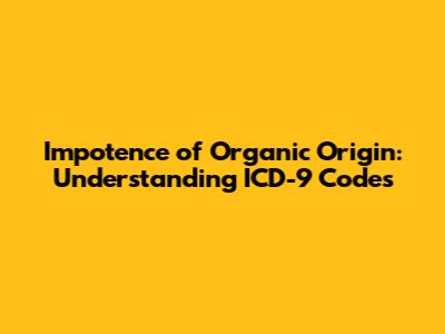 Hey guys! Let's dive into a topic that's more common than you might think: impotence of organic origin. Now, before you click away, let me assure you we're going to break this down in a way that's easy to understand and, dare I say, even a little interesting. We'll be focusing on how this condition was classified using the ICD-9 coding system. While the world has largely moved on to ICD-10, understanding the ICD-9 codes can still be super helpful, especially when dealing with older records or research.