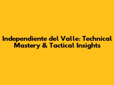 Independiente Del Valle: Technical Mastery & Tactical Insights