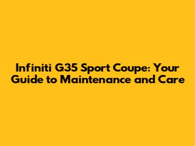 Hey guys! So, you're rolling in style with an Infiniti G35 Sport Coupe, huh? That's awesome! This car is a total classic, a real head-turner. But let's be real, owning one means keeping it in tip-top shape. That's where this guide comes in. We're diving deep into everything you need to know about maintaining and caring for your G35 Sport Coupe. From those common issues to the routine stuff, we've got you covered. Get ready to keep your ride looking and running like it just rolled off the showroom floor!