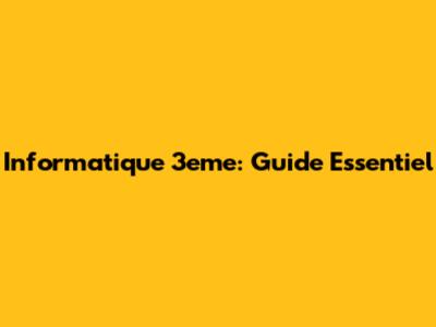 Informatique 3eme: Guide Essentiel