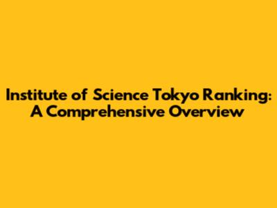 Institute Of Science Tokyo Ranking: A Comprehensive Overview