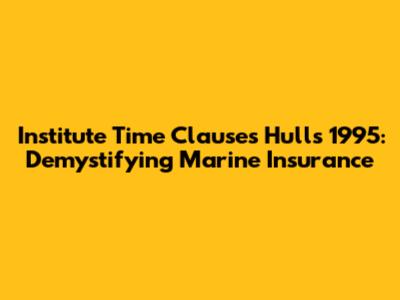 Hey there, insurance enthusiasts! Ever heard of the Institute Time Clauses Hulls 1995? If you're knee-deep in the world of marine insurance, or even just dipping your toes in, this is a seriously important set of clauses to understand. Think of it as the rulebook for insuring your precious ships and vessels. It dictates the terms, conditions, and coverage for a standard hull and machinery policy. It's the go-to document for defining what's covered, what's not, and how claims are handled. Let's dive deep and break down what these clauses actually mean and why they're so crucial in the maritime industry. Understanding these clauses is not just for the legal eagles. It benefits everyone involved. Whether you're a shipowner, a charterer, a broker, or simply interested in how the marine insurance world operates, knowing your way around the Institute Time Clauses Hulls 1995 is a massive advantage. So, grab a coffee, and let's unravel this complex yet essential topic together.