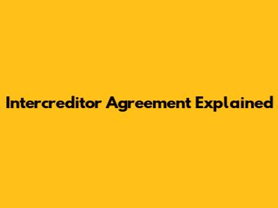 Intercreditor Agreement Explained