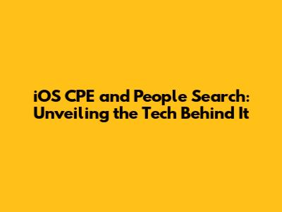 IOS CPE And People Search: Unveiling The Tech Behind It